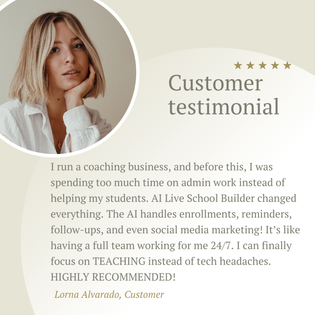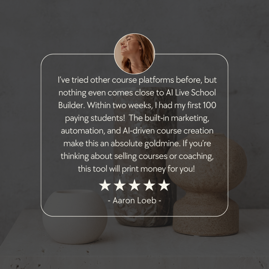 For more details, please keep reading my AI Live School Builder – Create & Launch Your Own LIVE School Review 2025.