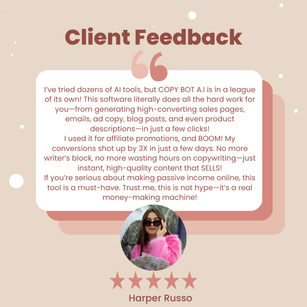 I have personally tested COPY BOT A.I, and let me tell you—it’s absolutely mind-blowing!  It delivers exactly what’s promised on the sales page, operates seamlessly, and is 100% bug-free.