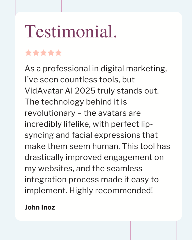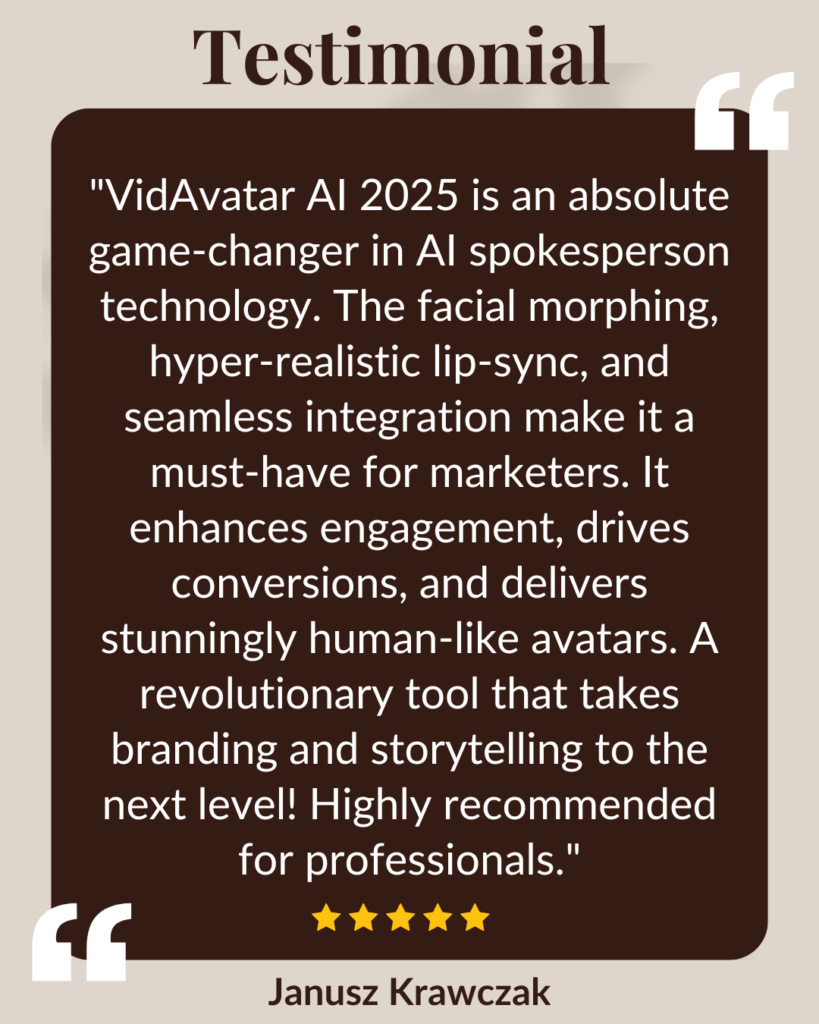 I highly recommend VidAvatar AI to video marketers, eCommerce sellers, affiliate marketers, social media marketers, and entrepreneurs looking to stand out in 2025. The opportunities this tool provides are endless. You can literally 10x your sales by using talking avatars with flawless lip-syncing and perfect voice integration.